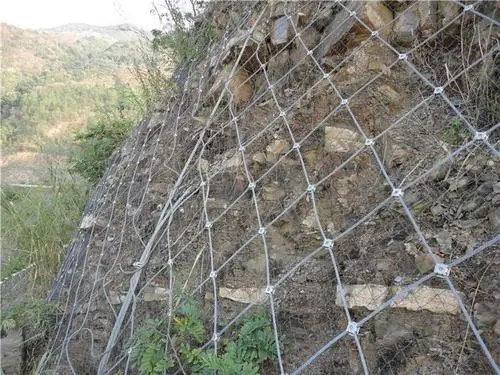 以鍍鋅高強(qiáng)度鋼絲繩為主要材料的的柔性防護(hù)網(wǎng)具有高韌性、高防護(hù)強(qiáng)度、易鋪展性等優(yōu)點(diǎn)。主動(dòng)防護(hù)系統(tǒng)通過多次邊坡防護(hù)工程的現(xiàn)場試驗(yàn)和對(duì)比,具有適應(yīng)任何坡面地形、安裝程序標(biāo)準(zhǔn)化、系統(tǒng)化等優(yōu)點(diǎn)。